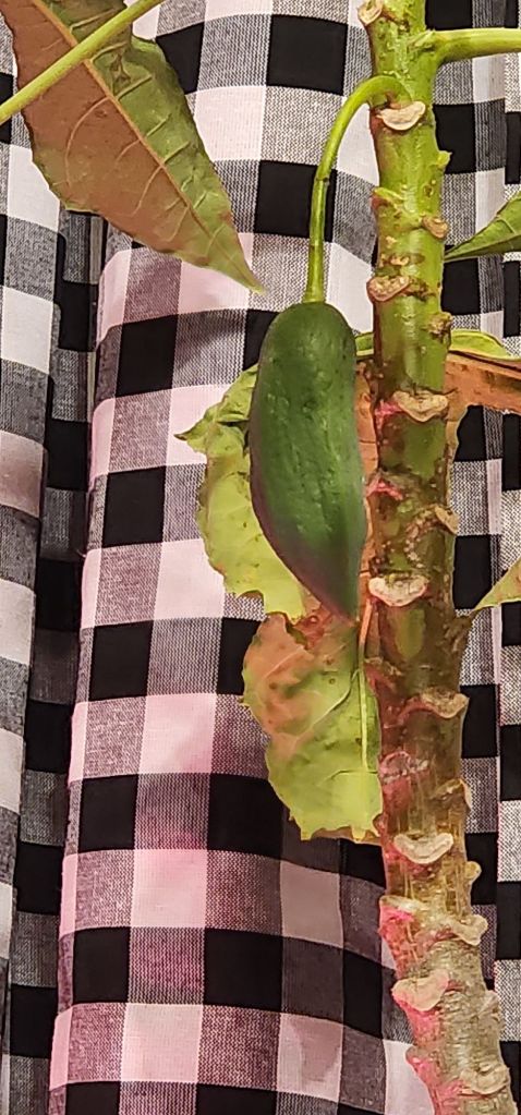 This is a babaco papaya (Vasconcellea × heilbornii). It’s a year old and has fruit. It’s supposed to taste very different from your average papaya variety. I am excited to see if I like it. I usually avoid papaya (they are just OK, with lime juice) and the only reason I am trying this was because I couldn’t think of any other plant to order from Raintree for payment.