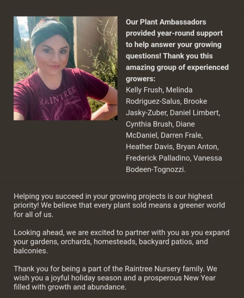 Raintree nursery has shut down their plant ambassador program, so I won’t be running around like a crazy person trying to find room for free trees. I’m happy. It was fun while it lasted, and I’m proud of the advice I gave.