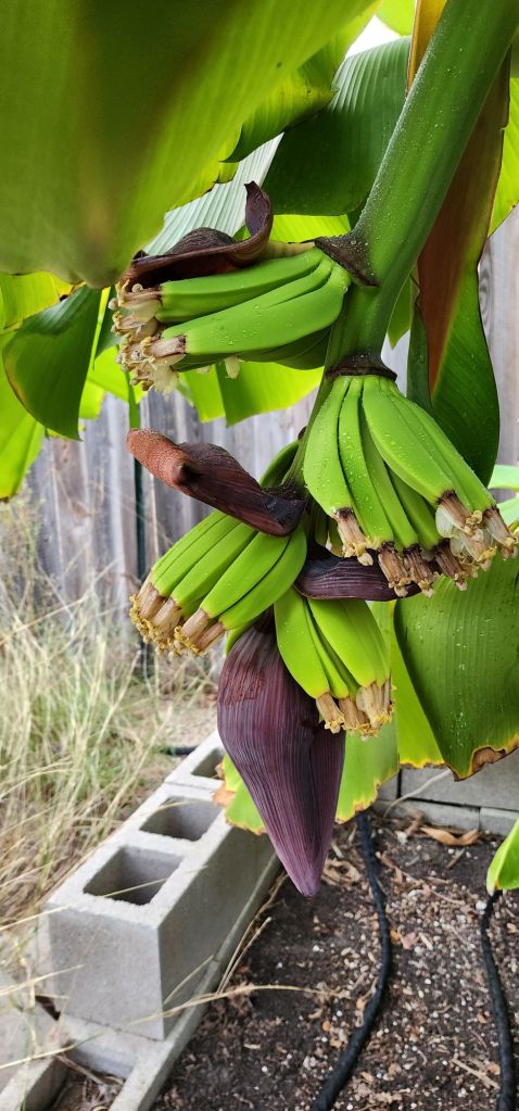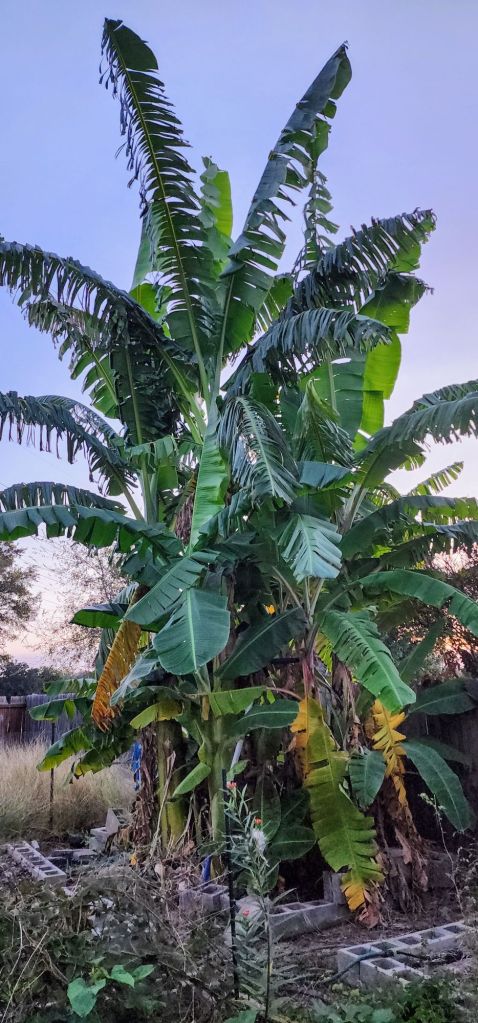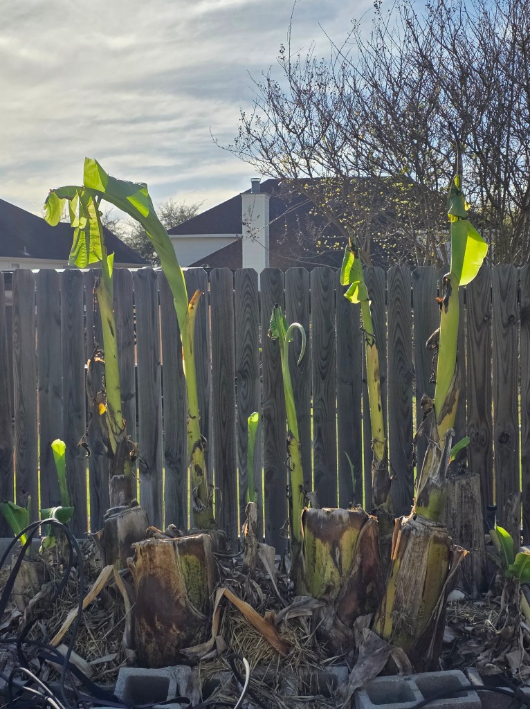 The biggest banana pseudostems did not survive the freezes we had. But some smaller ones did. Will I get fruit this year because I am starting with year old plants? Maybe. We’ll have to see.