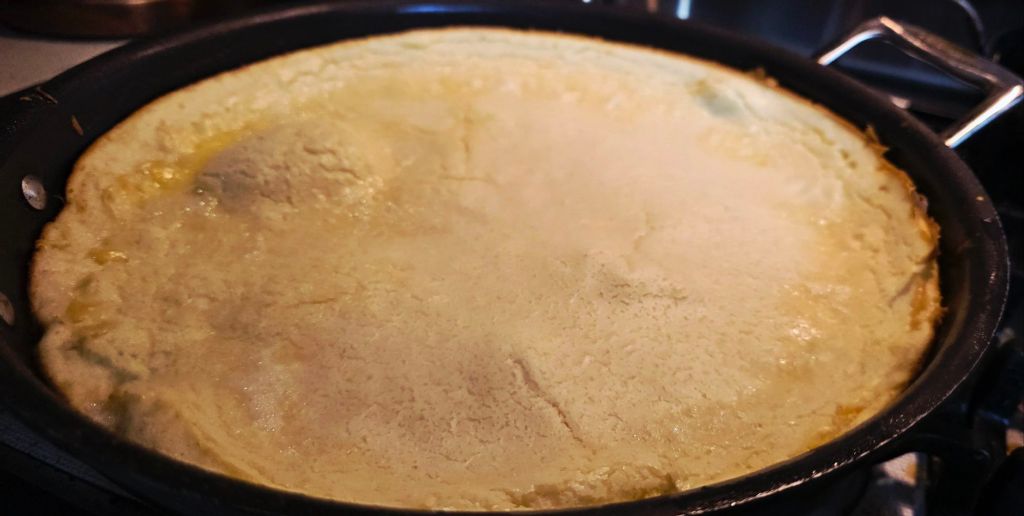 The batter is in the hot pan with the butter. It’s about to go into the oven!