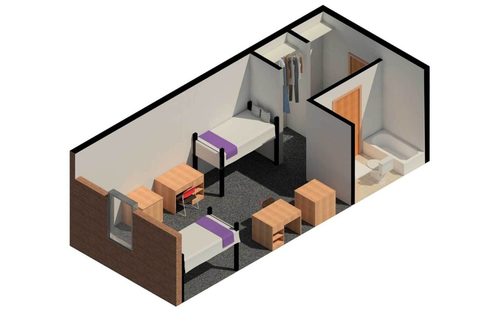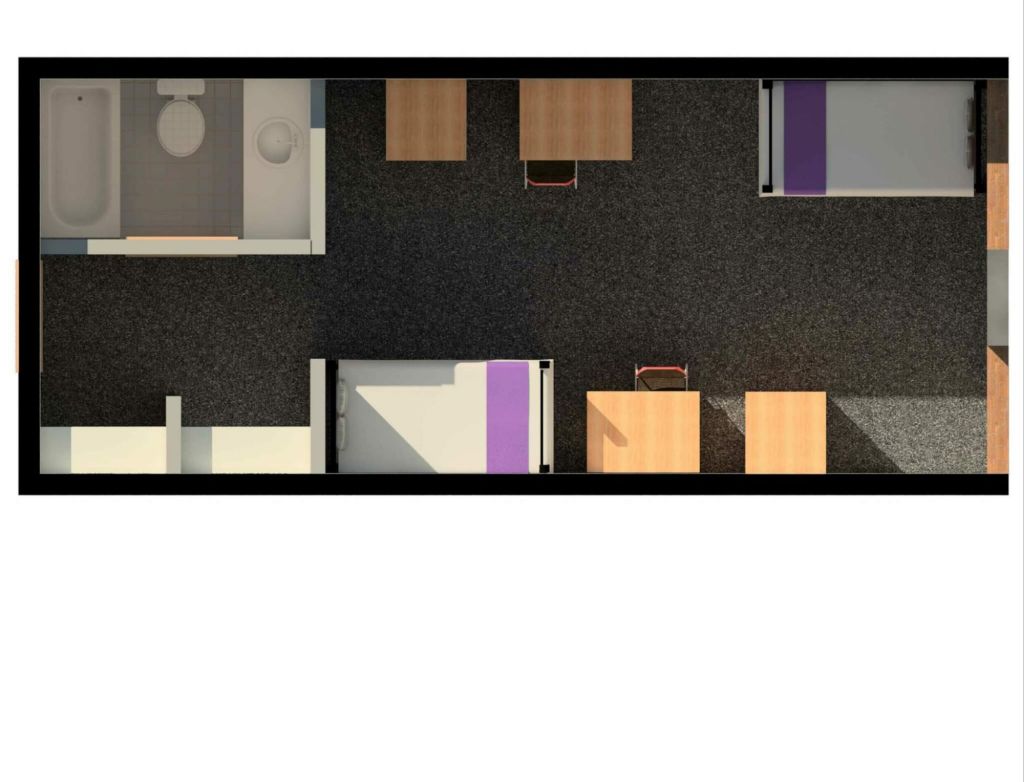 Their layout doesn’t even show a third bed. With a third bed: they also include a large wardrobe as a third closet. All the furniture (other than the wardrobe) has to be under the lofted beds in a 3 bed configuration.