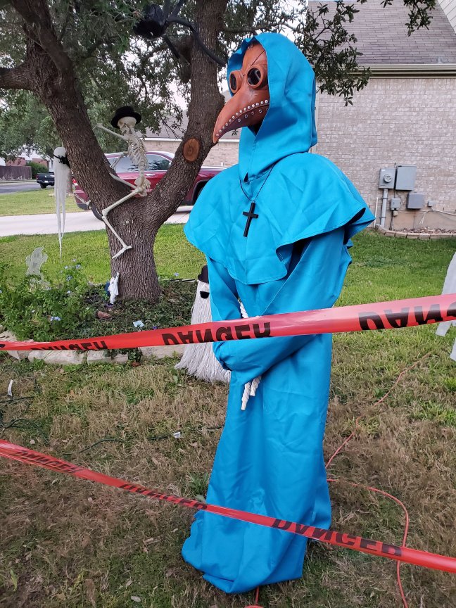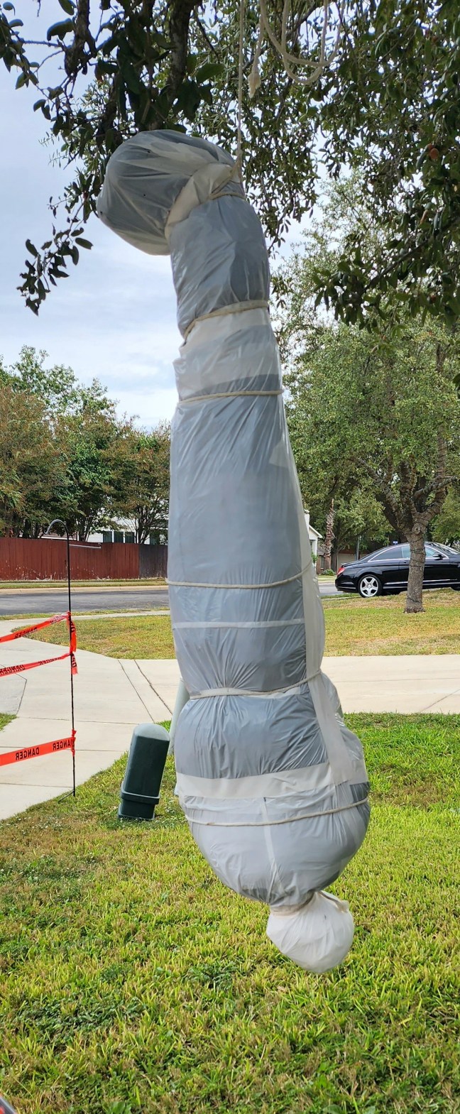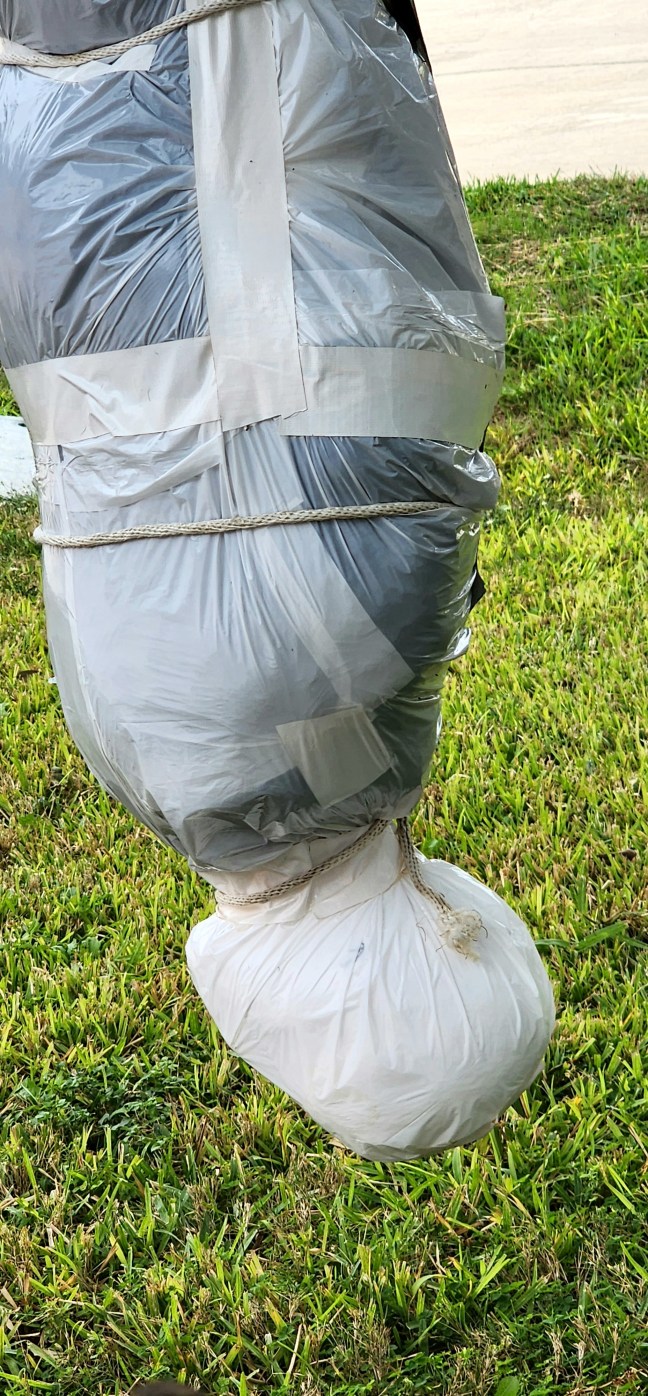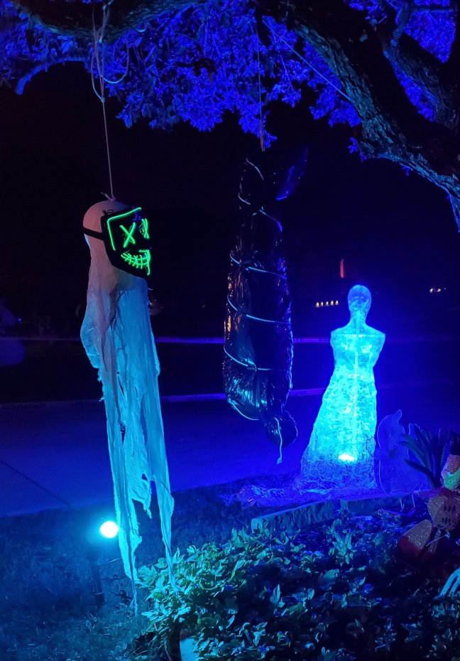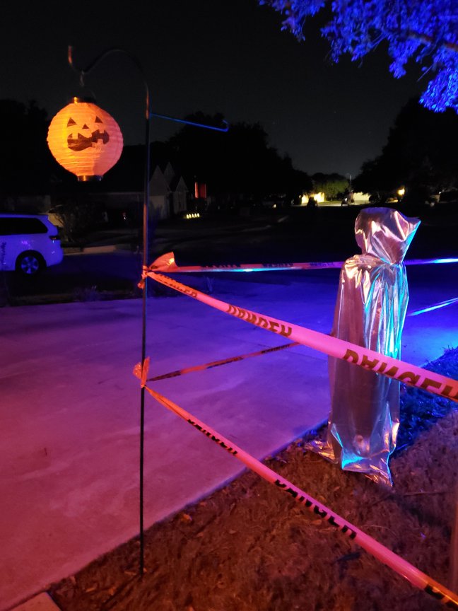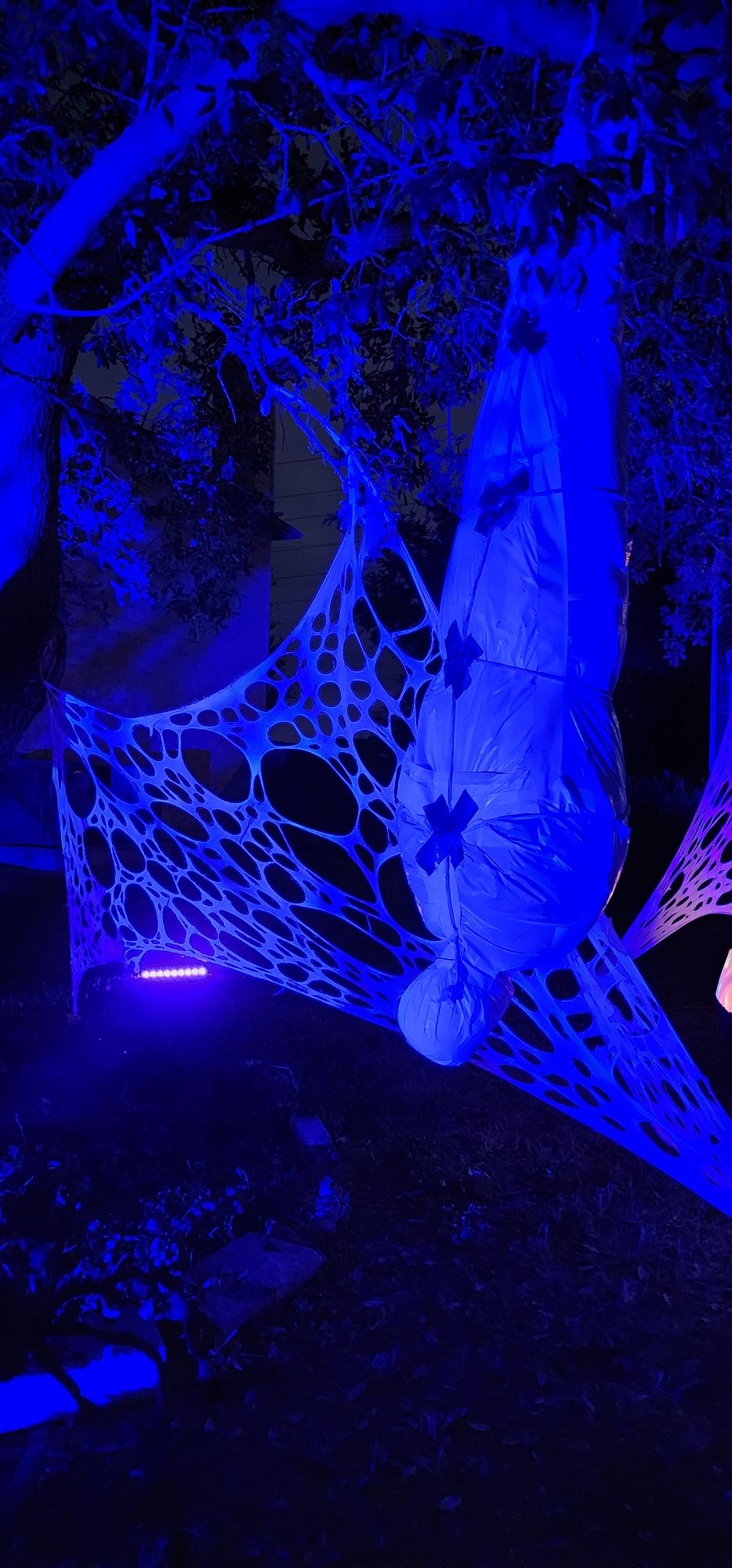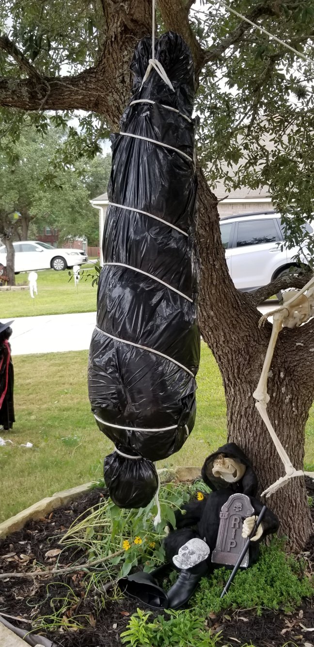 Wrapped this in white bags this year because my black lights make the body visible at night.