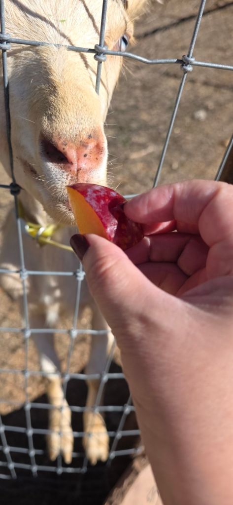 I only had one taker. But today I brought a cut up apple and now I’m best friends with the entire goat pen!