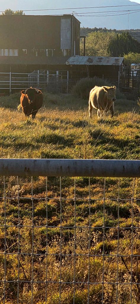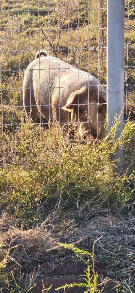 Two cows and four pigs. And me, like a dummy, got into the sand burs again. Hate, hate, sandburs!