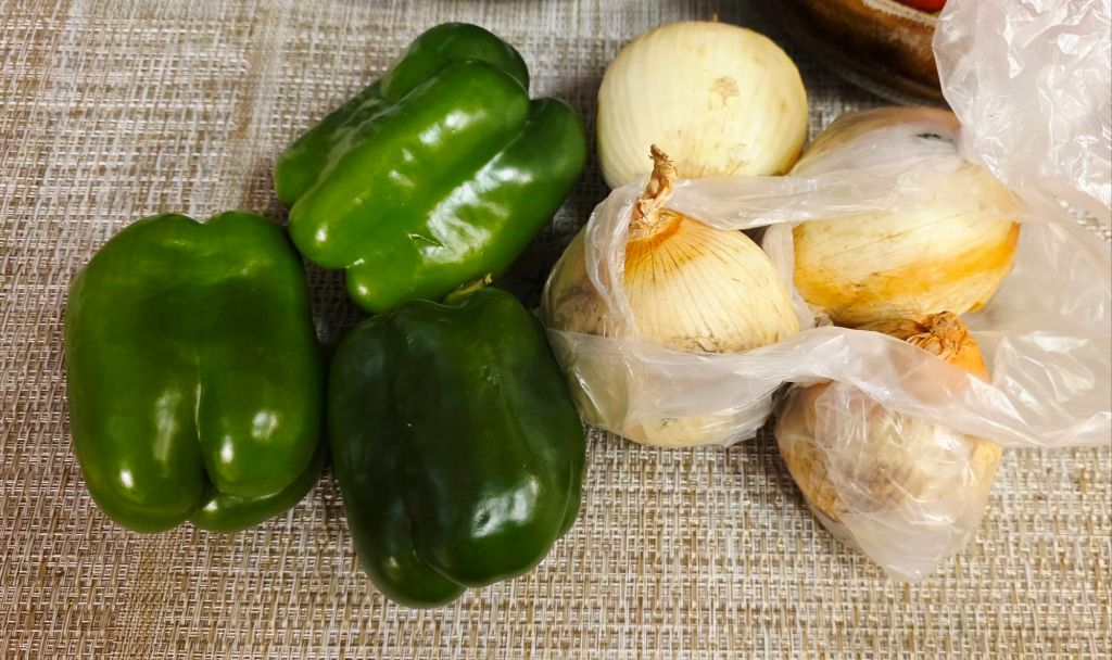 Some bell peppers and onions. The onions have mold and some soft spots.
