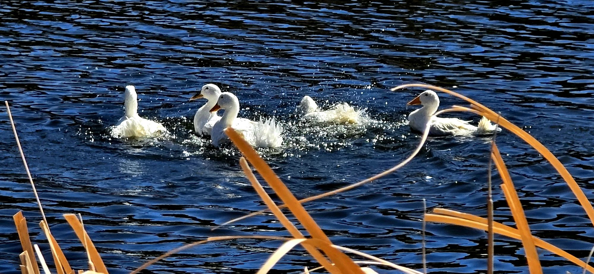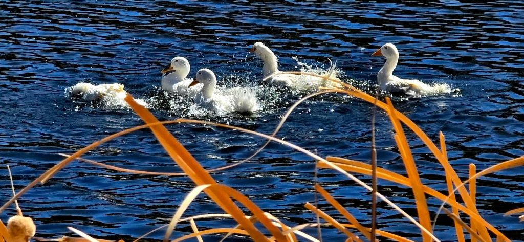 Always enjoyable watching the stark white ducks float around on the deep blue lake.