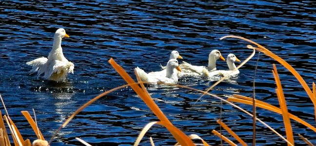 Always enjoyable watching the stark white ducks float around on the deep blue lake.